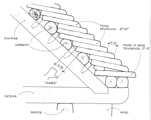 legno a triangolo, riempiti di scaglie e malta, ancora presenti in incognito in molte vecchie